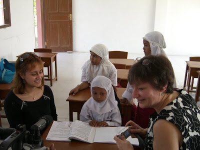 On another day we visited one of the secondary schools, all of the pupils turned out to welcome us, hundreds of them. We attended a trauma counselling session, and then listened while 2 of the students told their stories of the tsunami. They were very brave to stand up in front of so many people and tell such emotional stories. At the end of this session all of the students in our party stood up and told the pupils in the class how they felt about Banda Aceh. They were greeted with cheers and applause, and then the pupils all clamoured around us and wanted to have their picture taken with us. This was a very emotional experience to see these pupils who had gone through a terrible time showing such courage and joy in life.